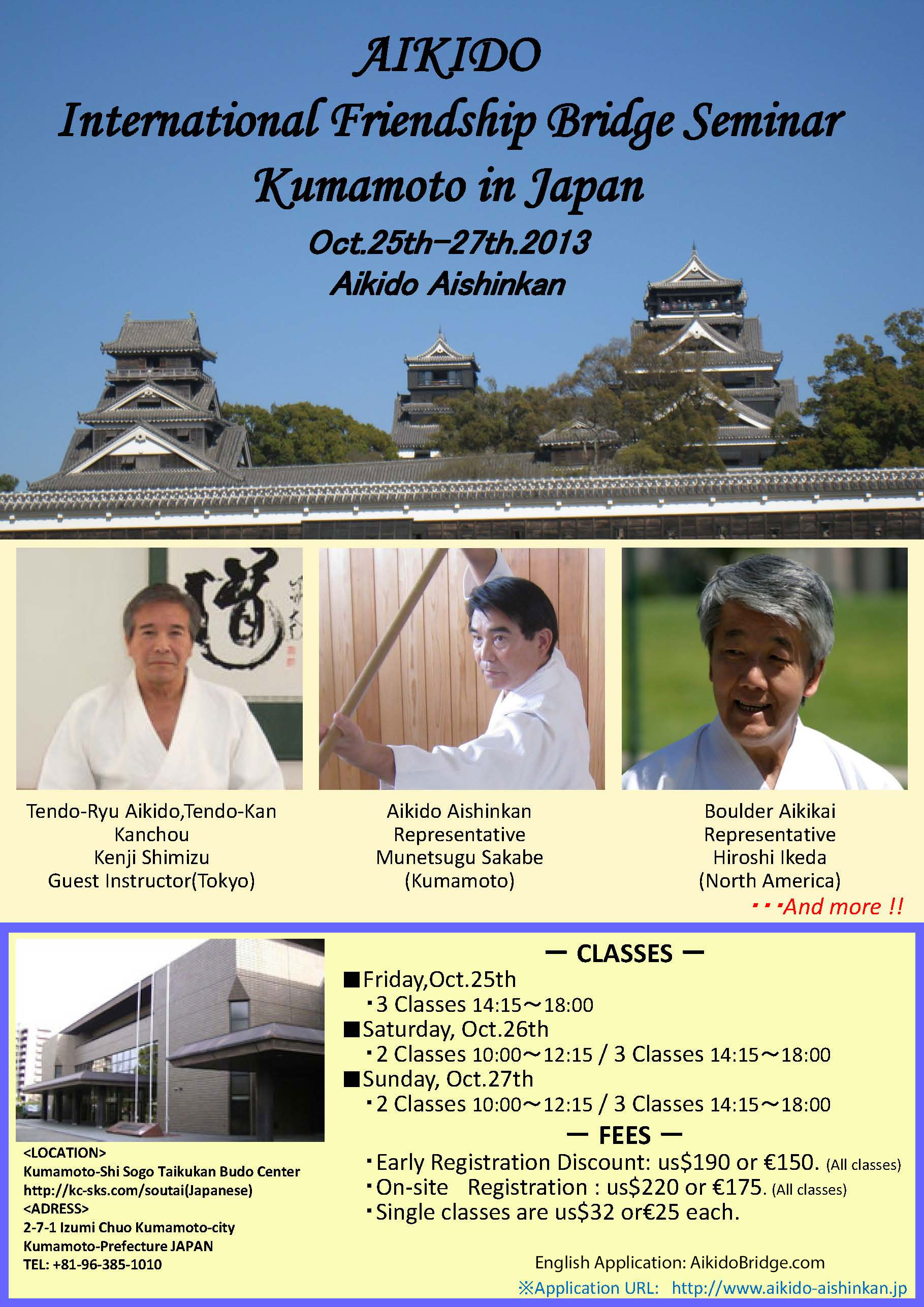 The Annual Aikido International Friendship Bridge Seminar will open in Kumamoto, Japan from Oct 25 (Fri) ~ Oct 27 (Sun), 2013.